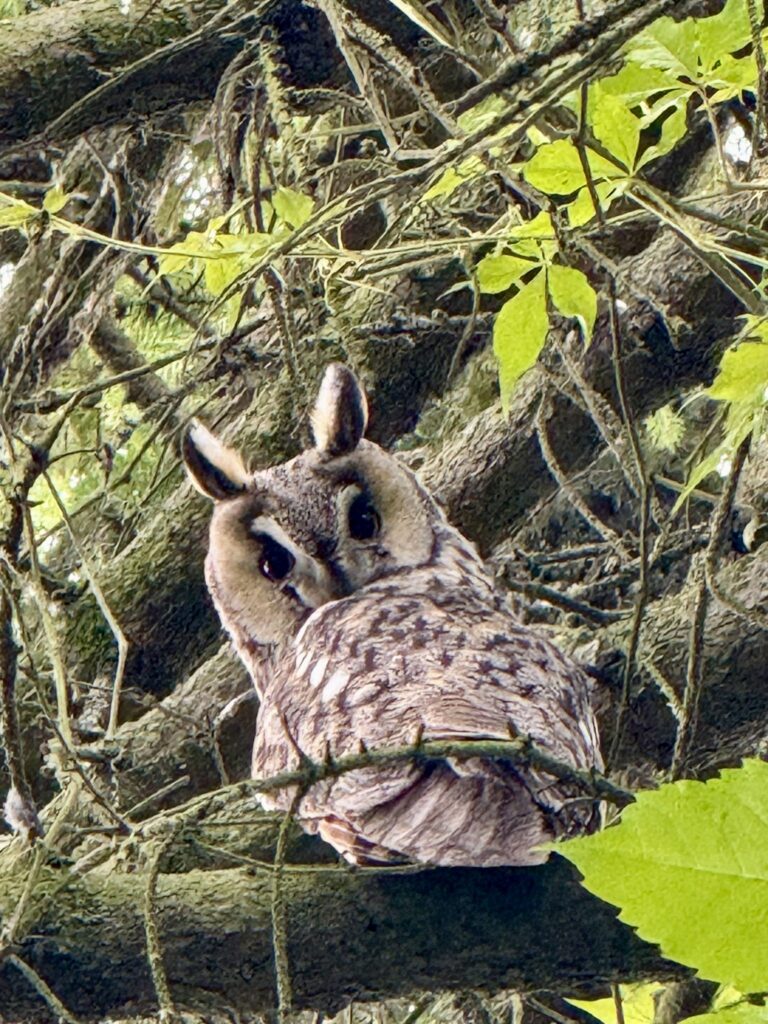 Wat een prachtige waarneming op SNV! Een ransuil-paartje mét twee jongen, ook wel takkelingen genoemd. Op het filmpje hoor je het kenmerkende geluid dat de takkelingen maken in de schemering – een beetje klaaglijk, bijna piepend – wat de ouders helpt bij het terugvinden van hun kroost tijdens het voeren. De ransuil voelt zich duidelijk thuis op het SNV-complex, en het is mooi dat deze plek al jaren een veilige broed- en verblijfslocatie biedt. Met die prachtige ´oorpluimen´, het intense oranje in de ogen en het subtiel gestreepte verenkleed maken de ransuil tot een van de meest opvallende uilen in Nederland.