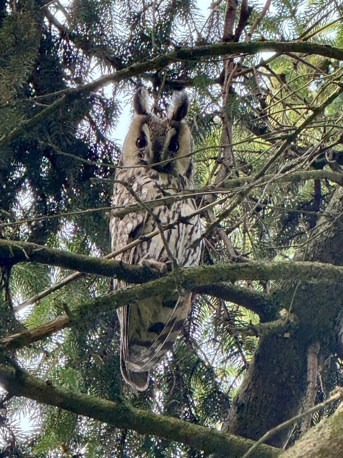 Wat een prachtige waarneming op SNV! Een ransuil-paartje mét twee jongen, ook wel takkelingen genoemd. Op het filmpje hoor je het kenmerkende geluid dat de takkelingen maken in de schemering – een beetje klaaglijk, bijna piepend – wat de ouders helpt bij het terugvinden van hun kroost tijdens het voeren. De ransuil voelt zich duidelijk thuis op het SNV-complex, en het is mooi dat deze plek al jaren een veilige broed- en verblijfslocatie biedt. Met die prachtige ´oorpluimen´, het intense oranje in de ogen en het subtiel gestreepte verenkleed maken de ransuil tot een van de meest opvallende uilen in Nederland.